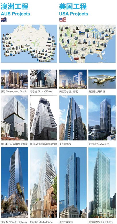 远大幕墙全球工程分布图(部分)