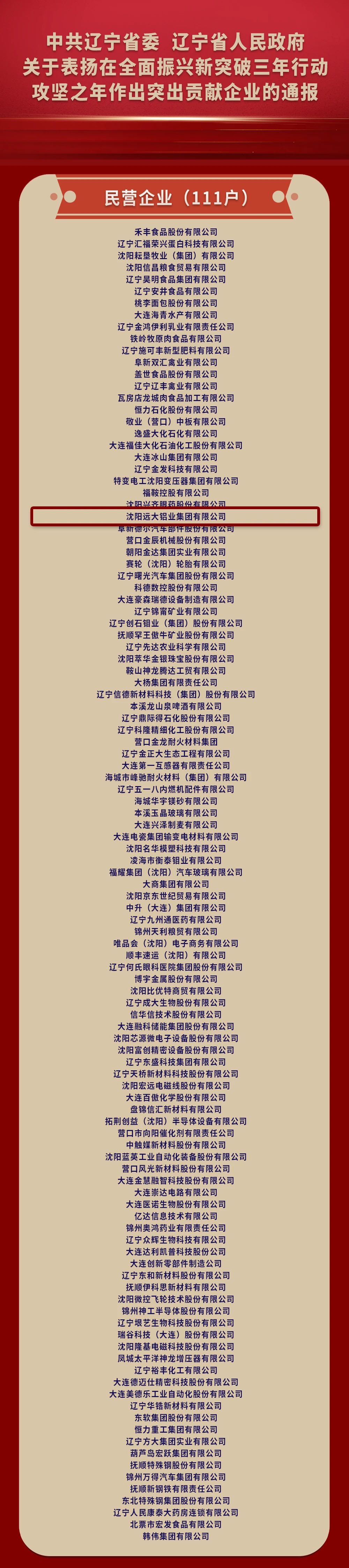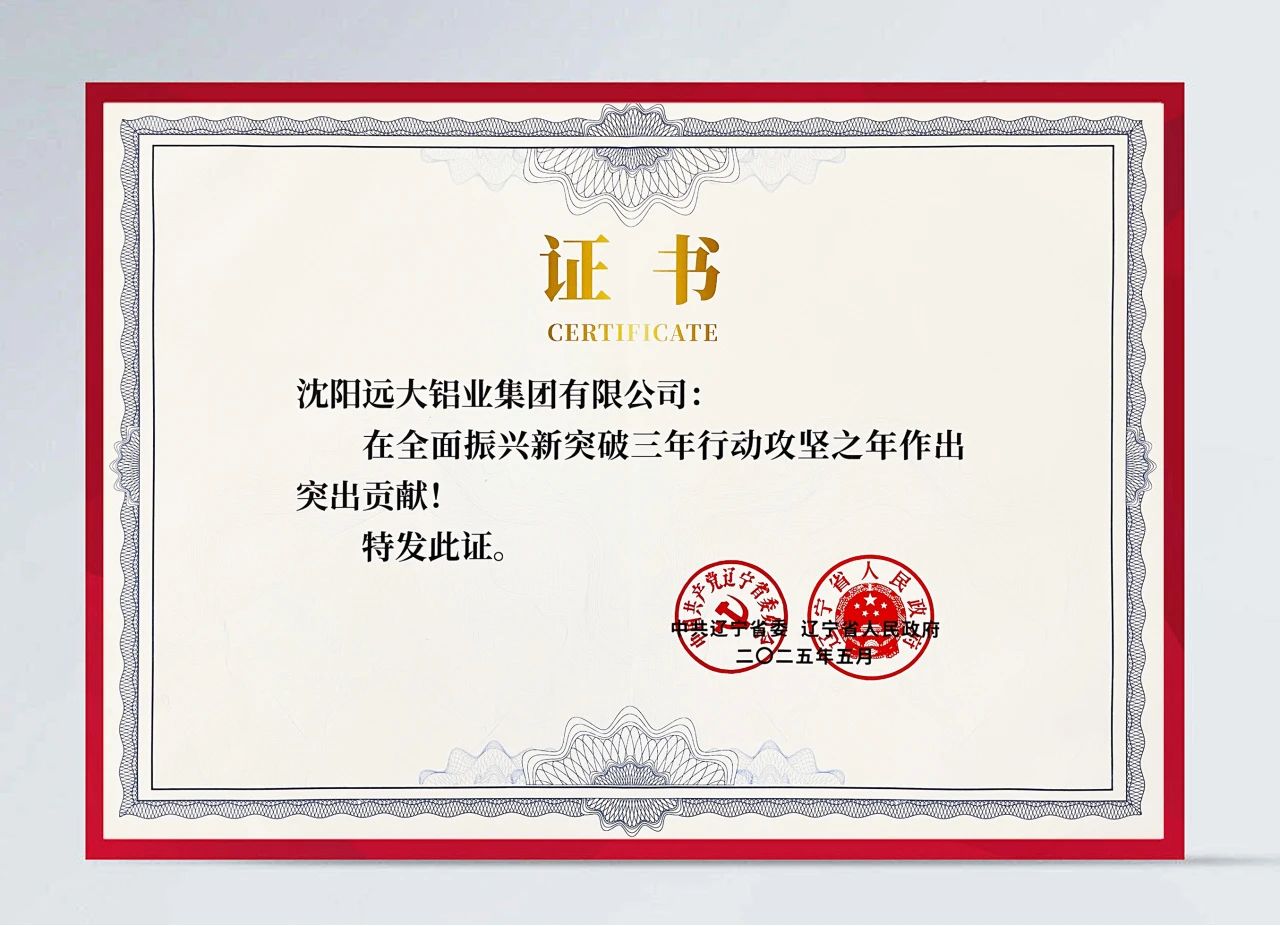 今天,我们怀着无比自豪的心情宣布:沈阳远大铝业集团作为111家受表彰的民营企业之一,荣登辽宁省委省政府通报表扬名单!这份沉甸甸的荣誉,是对我们坚守实业报国初心、勇担振兴使命的最高褒奖。