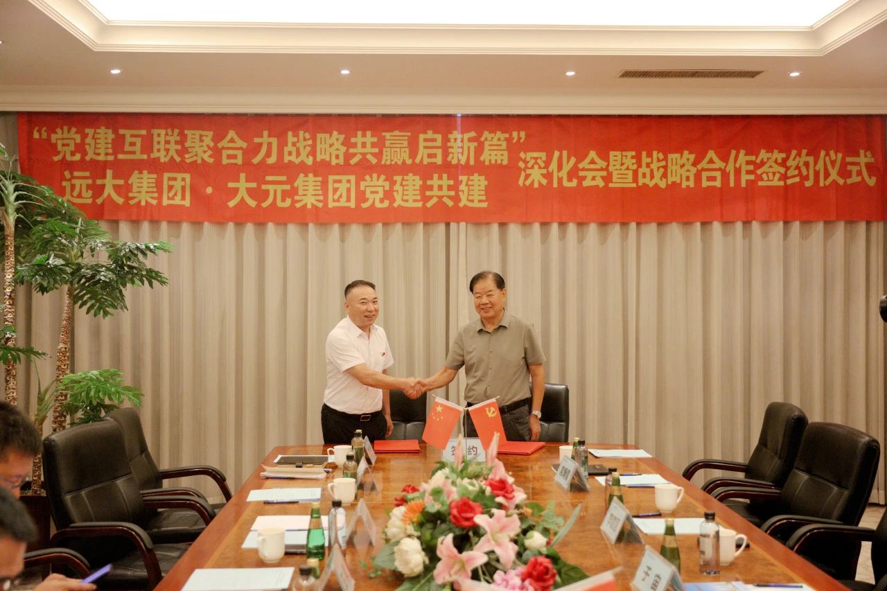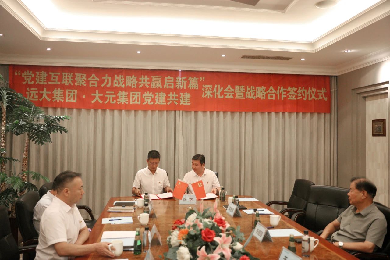 8月20日,远大集团总部接待中心气氛热烈而庄重。在远大集团此前到访大元集团开展党建互联共建活动的基础上,此次大元集团携深化合作的诚意回访,双方共同举行“党建互联聚合力 战略共赢启新篇”——党建共建深化会暨战略合作签约仪式。